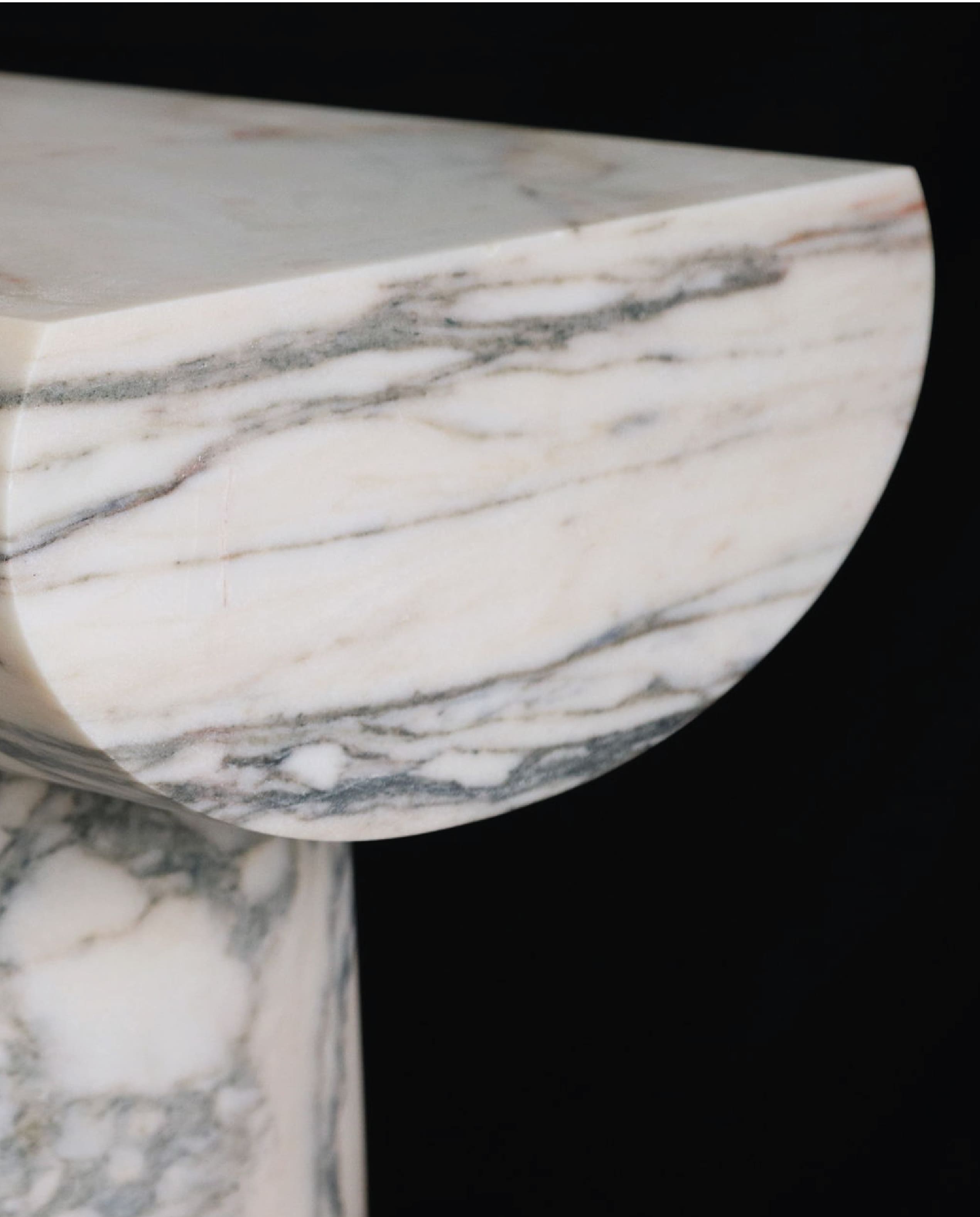 Veios cinzentos ondulantes sobre fundo claro criam movimento fluido no Arabescato Português. Quando aplicado em bookmatch ou espelhamento, transforma-se em mural artístico. Ideal para tampos, painéis verticais ou bases de luminárias esculturais.