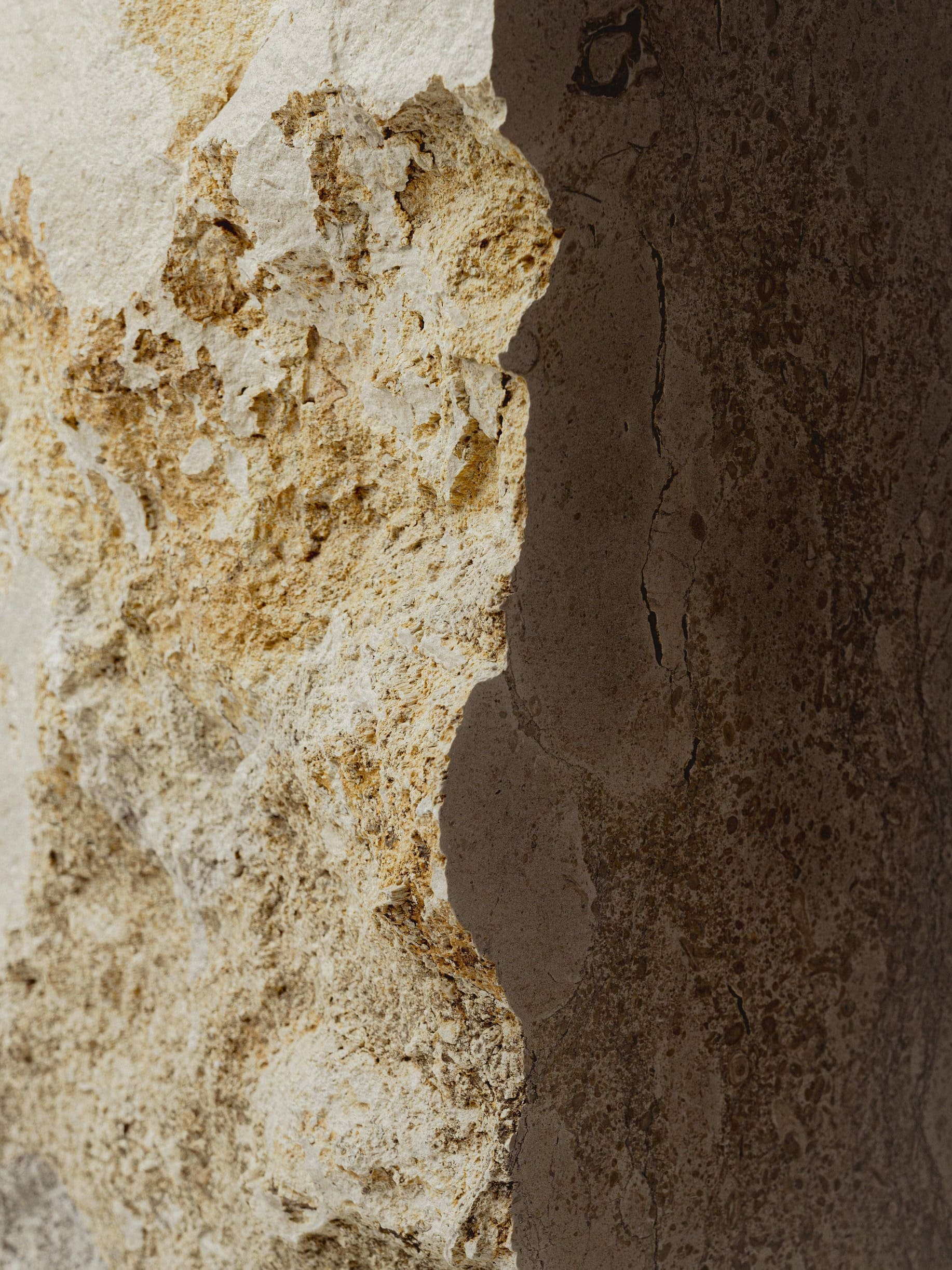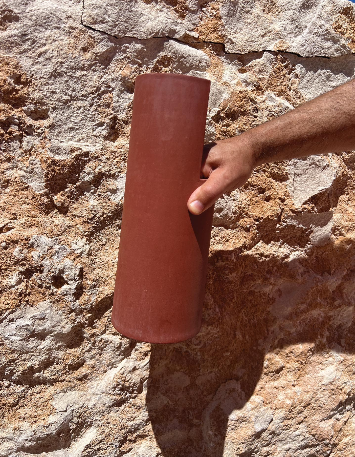 Na coleção do artista Vítor Reis, o calcário e barro vermelho, parentes na geologia e na cultura portuguesa, encontram-se num diálogo sensível entre força e maleabilidade. O calcário, que dá origem aos solos argilosos que há séculos alimentam a olaria tradicional, surge aqui como estrutura firme e protetora, enquanto o barro, moldado à roda, evoca a cerâmica ancestral da Estremadura.
