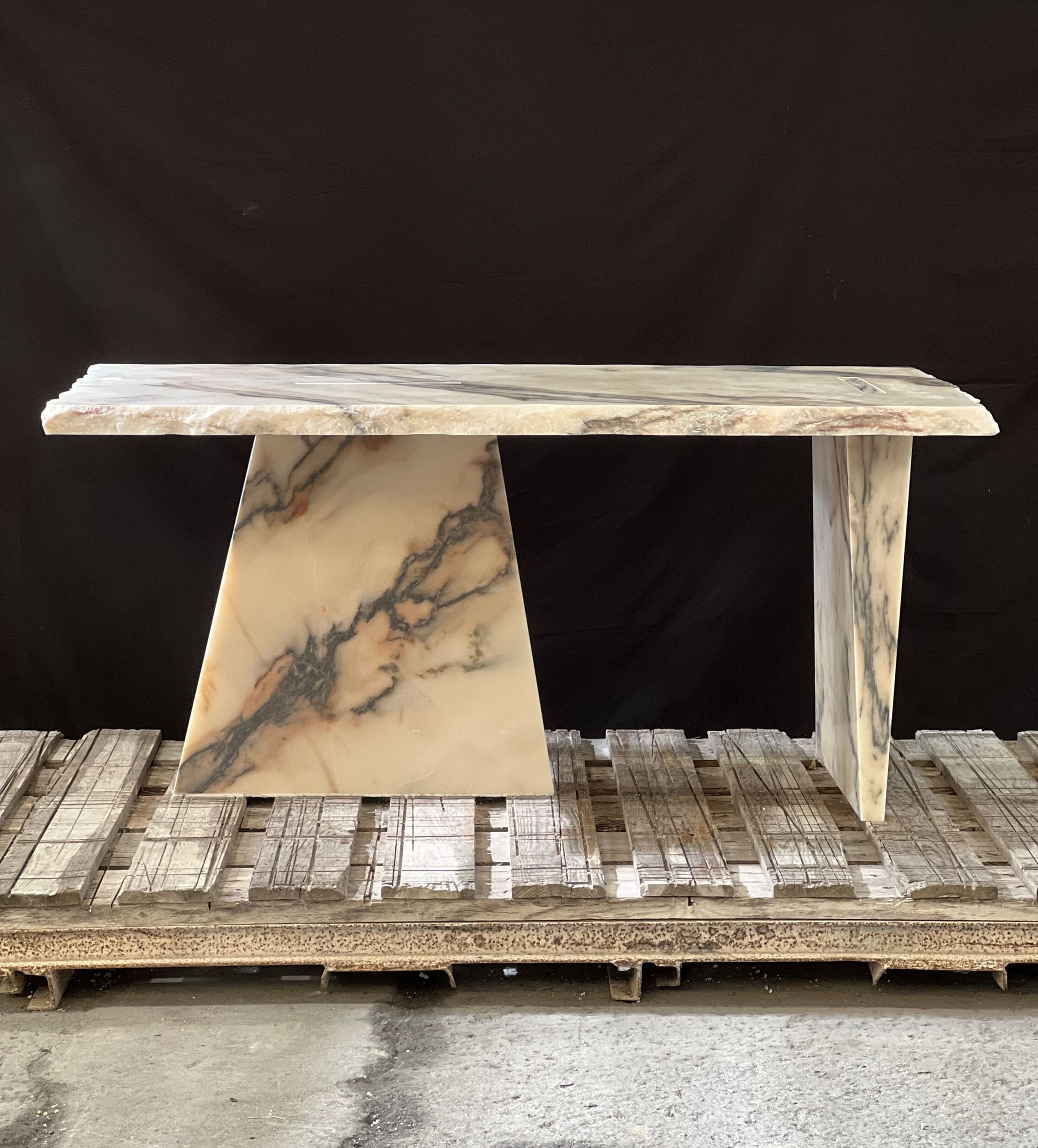 O Grupo Galrão, proprietário de pedreiras de mármore no Alentejo, convidou-nos a criar uma mesa maciça em pedra para o seu stand na MarmoMac 2023, a principal feira internacional dedicada à pedra natural, realizada anualmente em Verona, Itália.