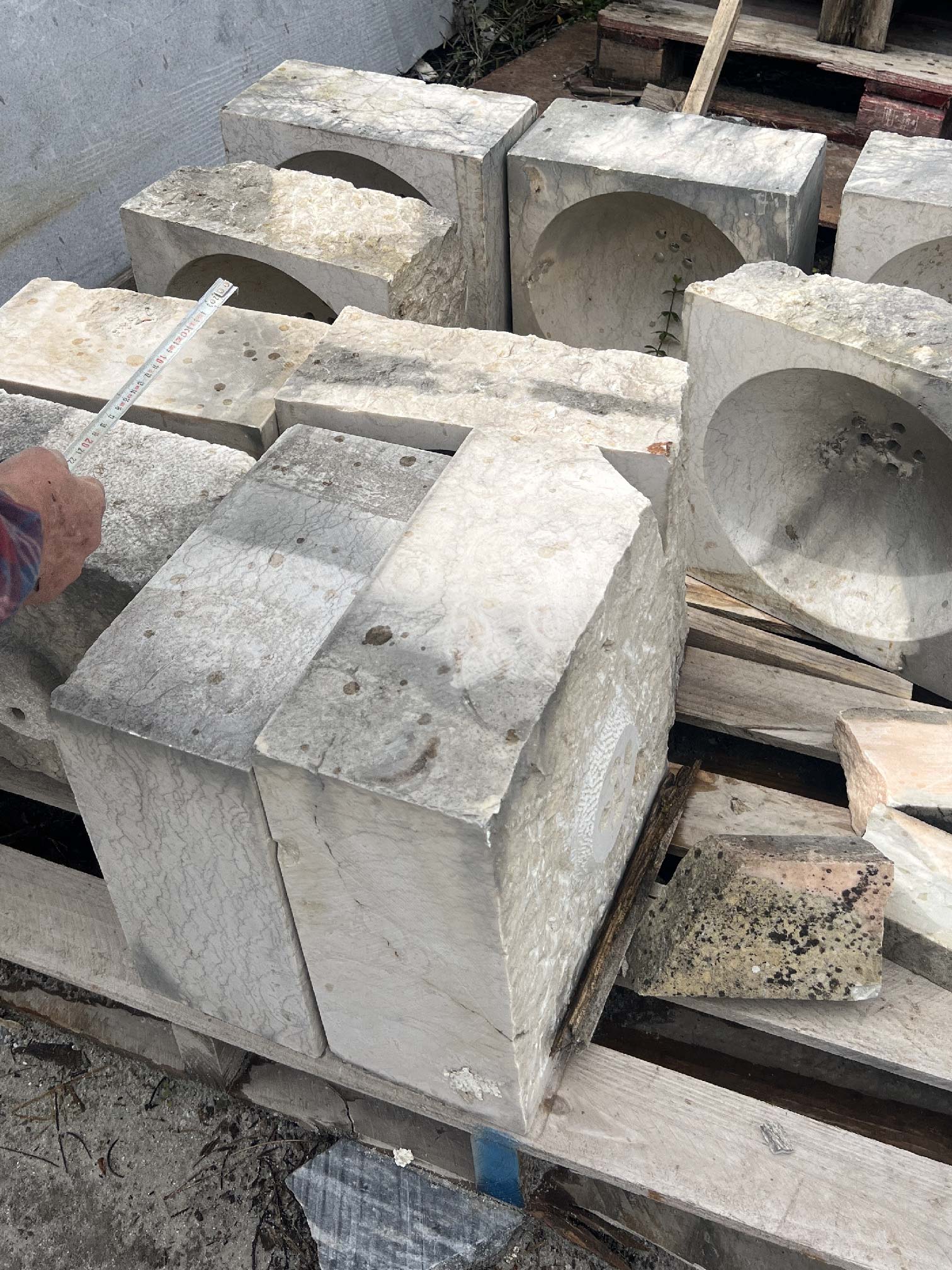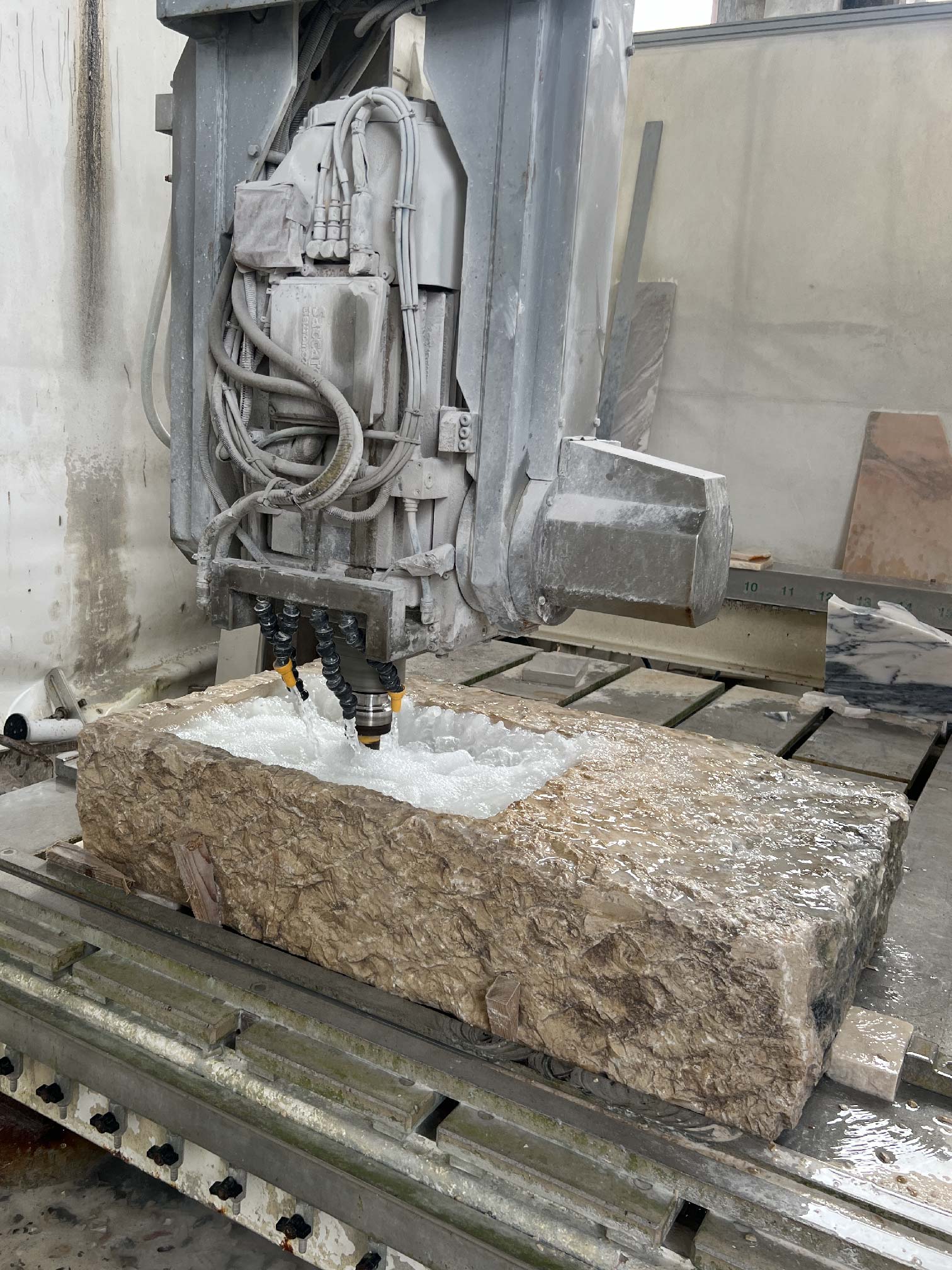 Peças exclusivas desenvolvidas para o projeto Guest House, no Algarve, com foco em preservação de história e na valorização da alma do material. Resgatamos antigas pias de pedra, polimos, tratamos e restauramos com cuidado e reutilizamos um bloco de pedra bruta encontrada no nosso próprio quintal, transformando-o em uma peça escultural de destaque.