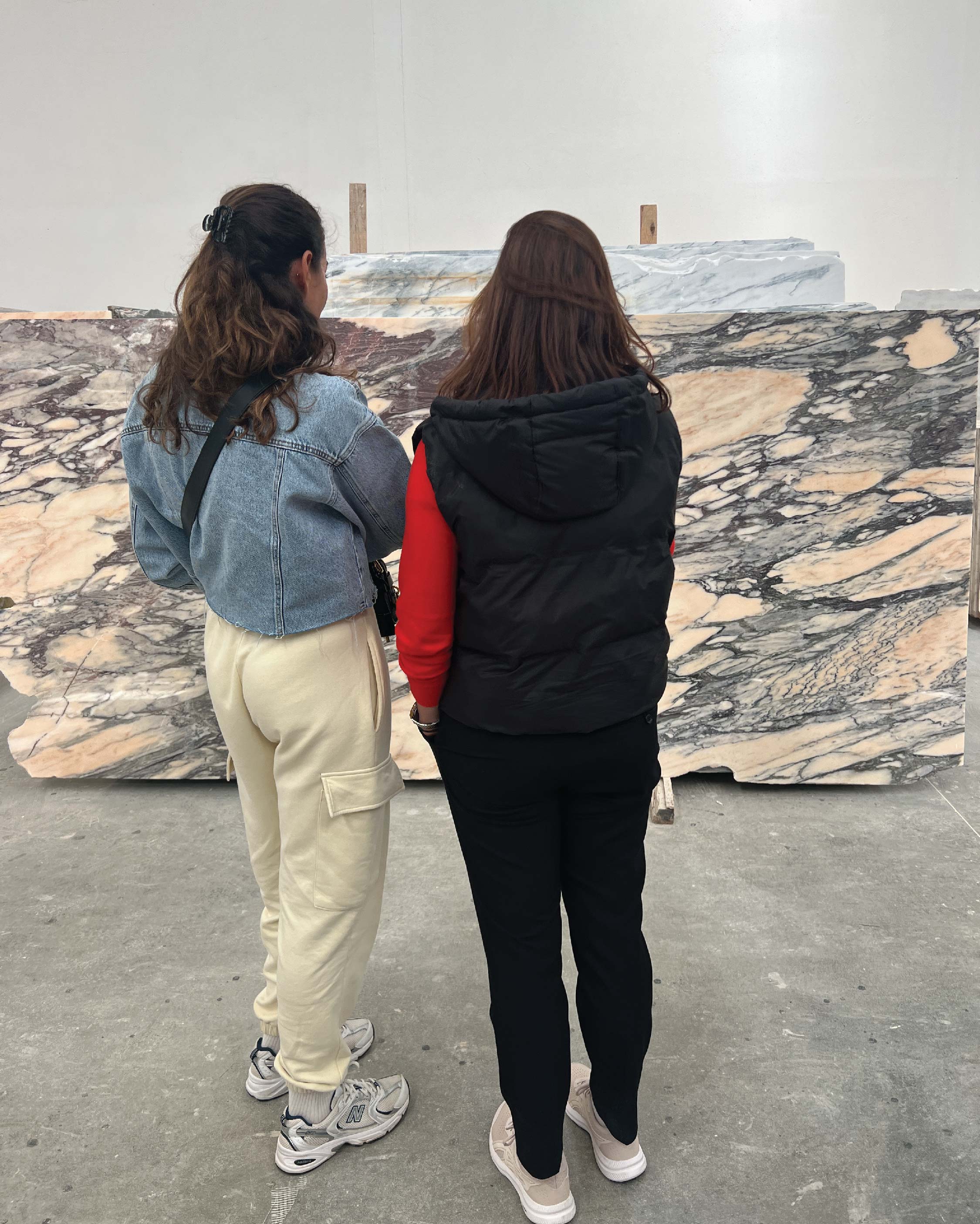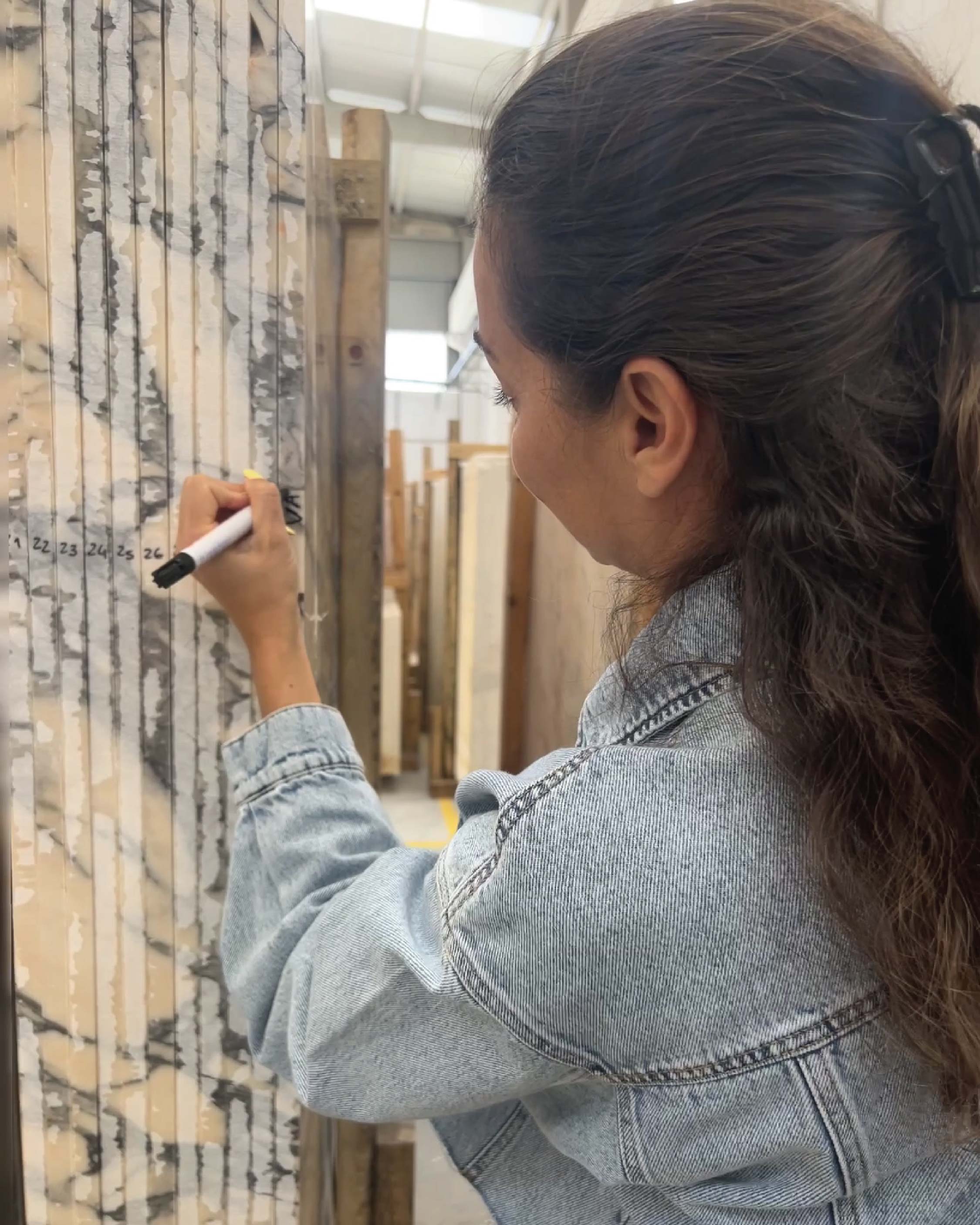 Um trabalho de detalhe e alinhamento que valoriza a expressividade e a sofisticação natural do material.