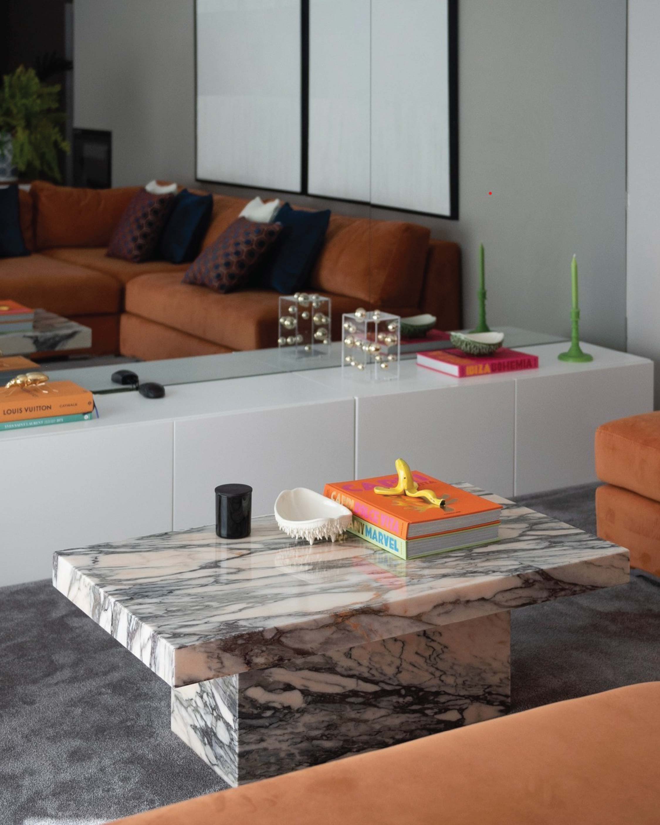 “Estou completamente apaixonada pela minha mesa de centro em mármore! Esta mesa trouxe outra energia à decoração da casa. É uma mesa cheia de presença, feita toda ela à medida pela talentosa Olivah” – Vanessa Martins