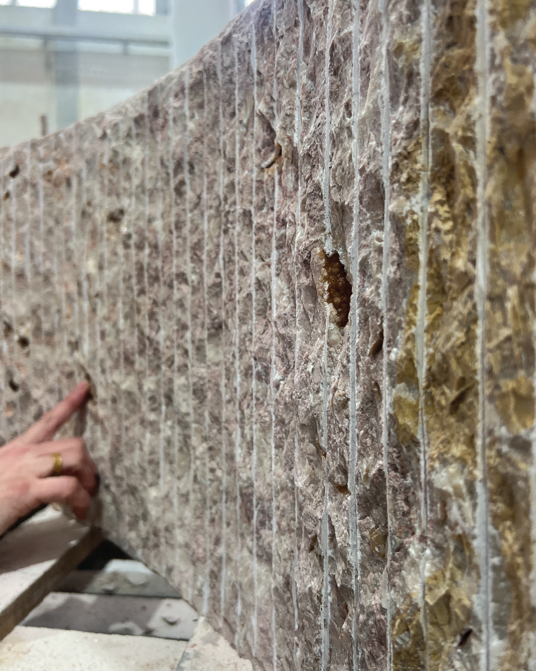 A colaboraçãocom Damaso Mayer reflete um alinhamento com a visão da Olivah de valorizarblocos já extraídos e matéria deixada de lado ao longo do processo,contribuindo para novas leituras do material e do seu potencial.